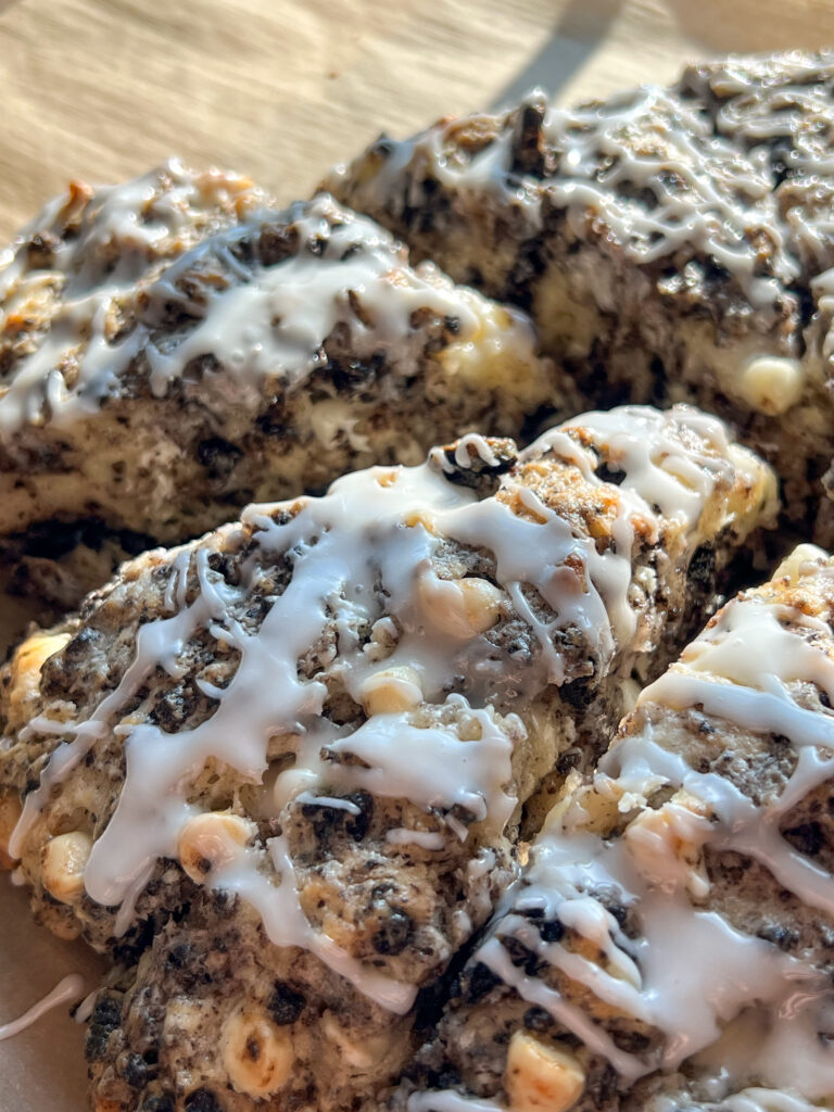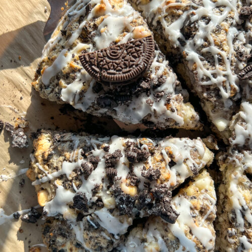 These cookies and cream scones are soft, flaky, and layered—never dry or dense. Made with a simple Greek yogurt and milk buttermilk substitute, they’re packed with white chocolate chips and chocolate cookie pieces for a rich, bakery-style treat perfect for breakfast or brunch.